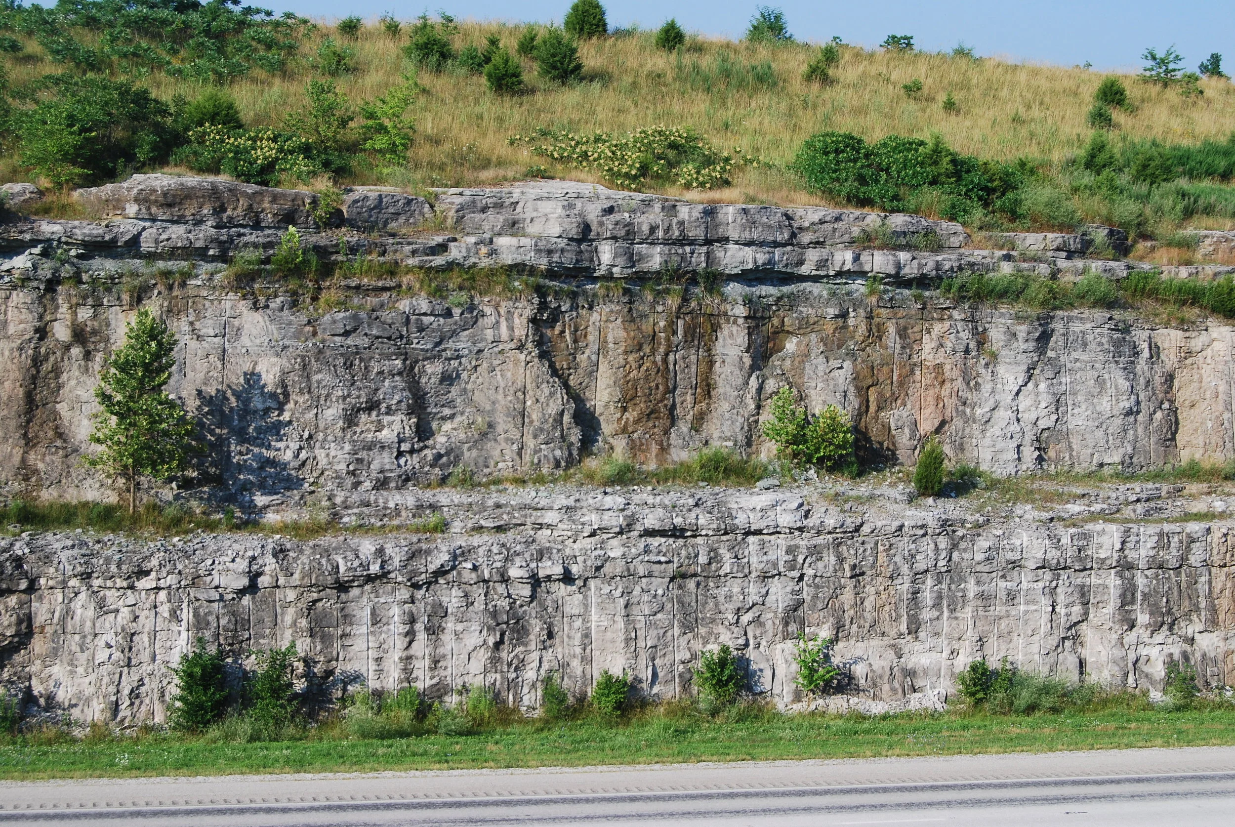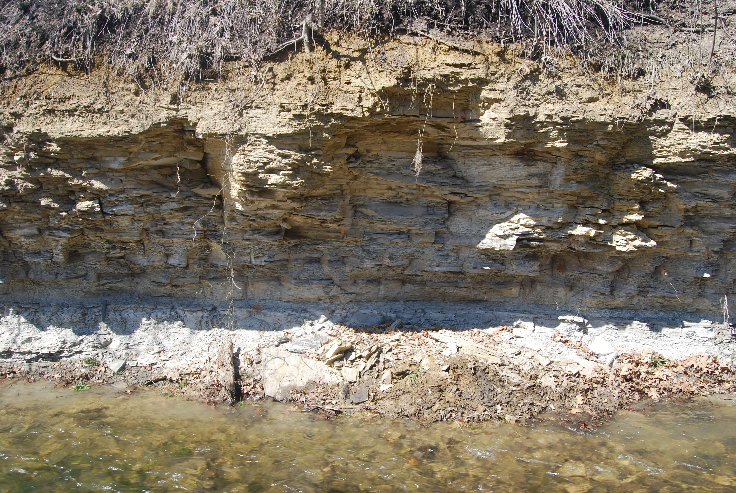 Lower Meramecian Tahlequah Limestone (middle unit) overlying cherty osagean strata an dunderlying shaly limestone of the Mayes Group